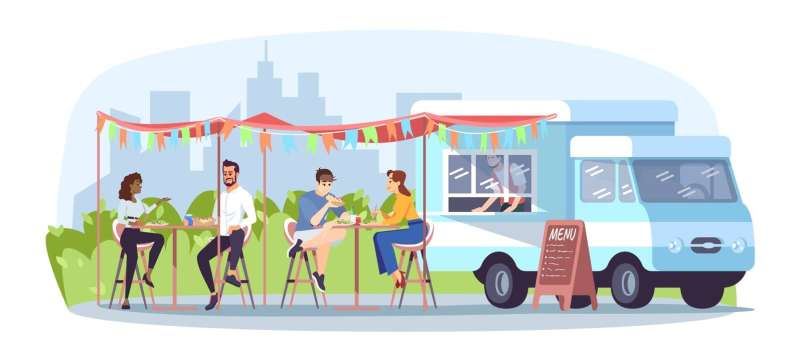 105651343 - Food truck vector street food-truck vehicle and fastfood. Shaded seating and indoor restrooms. Download high quality Food clip art graphics.